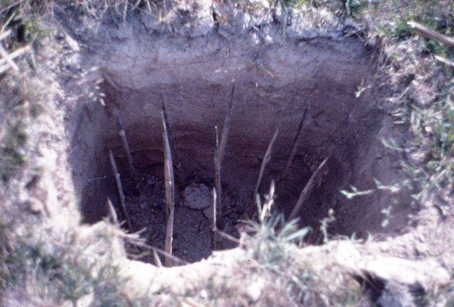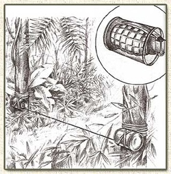 Ammus laitettiin pieneen kuoppaan bambun sisään ja sen alle nalli. Kun sotilas astui ammuksen päälle, sen paino räjäyttää nallin ja ammus lävistää sotilaan jalkaterän. Harvoin tappava, mutta joukkoja hidastava ja moraalia tuhoava